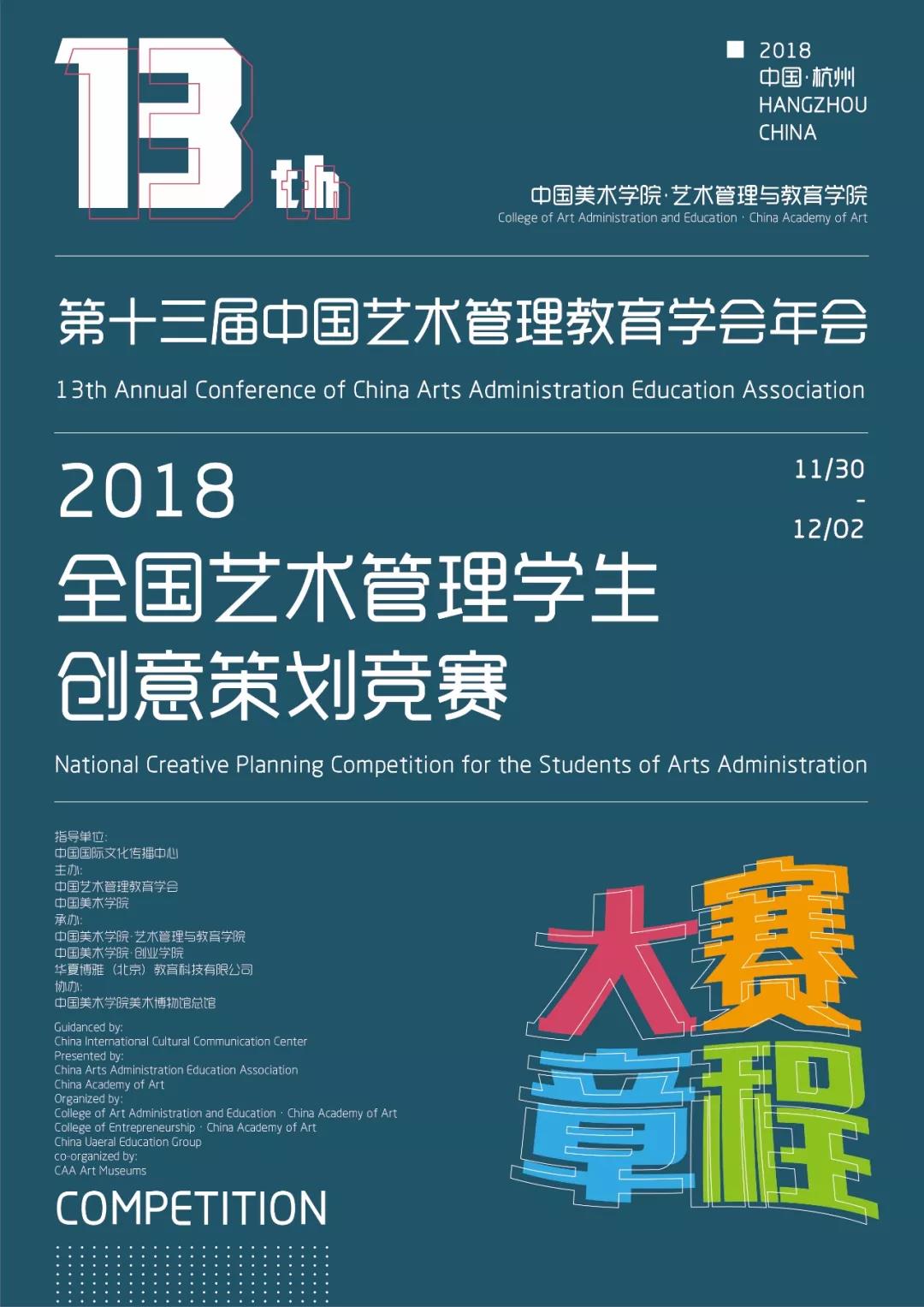 应各高校参赛者要求,经中国艺术管理教育学会第十三届年会组委会商议,决定将2018·全国艺术管理学生创意策划竞赛报名截止日期延至2018年11月6日。