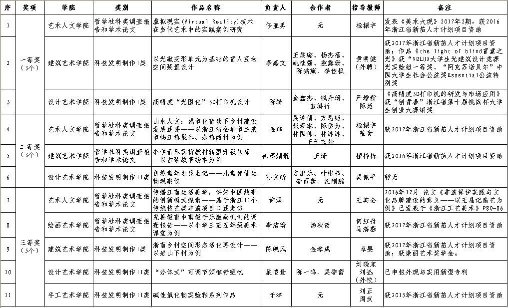 附件:中国美术学院2017年“挑战杯”校赛获奖团队名单