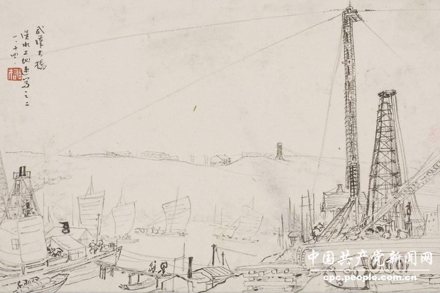 黎雄才:《武汉长江大桥速写》