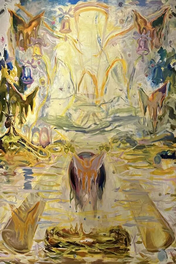 在参观过程中,金一斌对井士剑多年来深耕艺坛给予高度评价。他指出,井士剑的“长亭外”系列,彰显出杭州特有的人文地理滋养,内蕴着中华民族深厚的文化传统。艺术家以“艺术地理”的考古方式勾勒出一个跨越了两个世纪、三个国度的艺术演进样本:从19世纪美国马塞诸塞州的《梦见家和母亲》,到20世纪日本的《旅愁》,再到李叔同的《送别》,艺术家以绘画语言对音乐和历史进行转译,绘写了一系列画面中的物象:《送别》开篇的长亭,歌手的脸庞,虎跑的泉与林……,以一种全球的眼光和新时代气象,进行不断的历史追索与方式拓新,表达了对永恒现在的认识,通过穿越不同国度的东西方文明的艺术构建,为中国当代的美术新维度提供了思想观念和可能性方向。