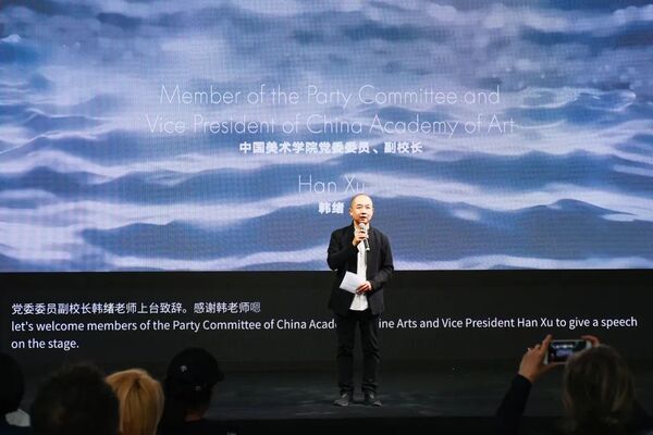 中国美术学院党委委员、副校长韩绪老师代表中国美术学院对所有中外导师表示了欢迎。在致辞中,韩老师探讨了本次小学期的主题——"人工智能与人工生命",强调了其重要性和思考方向,隐含在主题之下的关键点:忧患和相处。韩院长将此次小学期描述为一次真正的冒险之旅和英雄之旅。他强调,这个小学期的冒险具有明确目的,不仅仅是为了玩乐,更重要的是为了思辨和思考世界与学业之间的关系。他呼吁艺术从业者要学会用自己的语言、逻辑和系统来告诉自己正在从事的事情是什么。他以“技术美学”作为例,希望学生们通过这次国际联合设计课程的主题,找到中国人的逻辑,并用中国人的话来表达给我们中国人听。