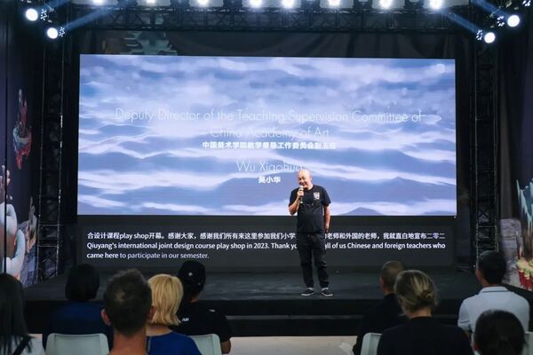 中国美术学院教学督导工作委员会副主任吴小华老师宣布创新设计学院2023 国际联合设计课程 PLAYSHOP 正式开幕