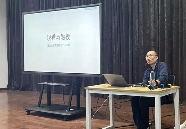 有幸聆听李文东老师的讲座《观看与触摸》,从中我深刻地感受到先生对于绘画研究的执着和纯粹的情感。老师以自己的求学经历为起点,由浅入深,把他的所见所闻所感向我们娓娓道来,跟我们讲述了自己对绘画实践与理论研究的经验和观点。谈油画变迁忆创作经历,记留学逸事道绘画研究。
