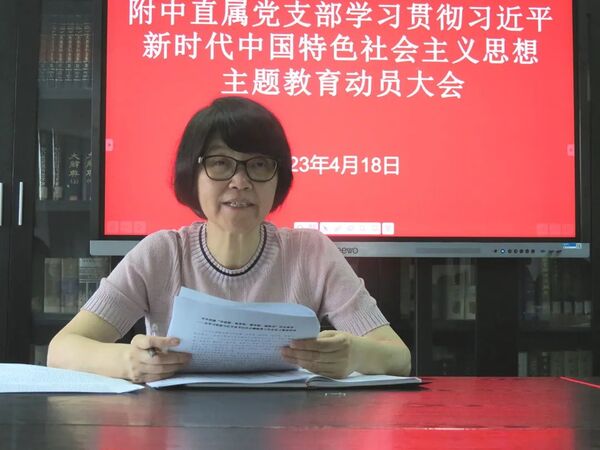 4月18日下午,中国美术学院附中召开学习贯彻习近平新时代中国特色社会主义思想主题教育动员大会,传达中央、省委、学校关于开展主题教育的讲话精神、会议精神和具体要求,附中直属党支部书记俞芳秀作动员讲话,全体党员教师参加会议。