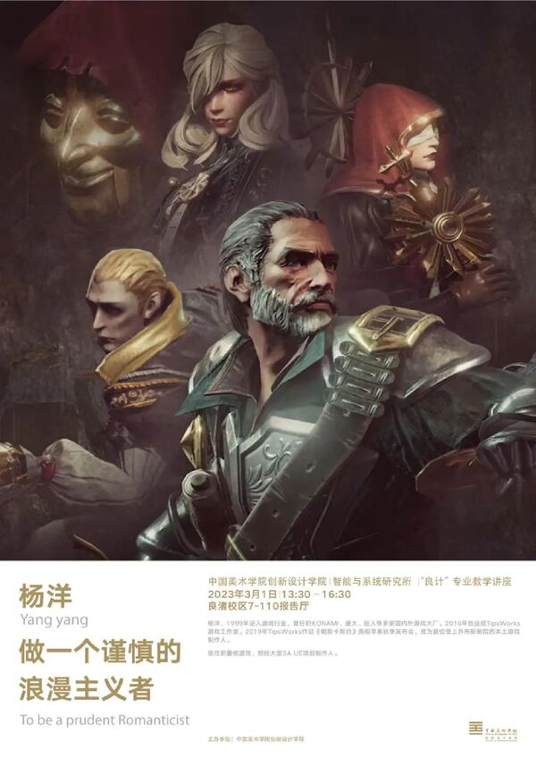 3月1日13:30-16:30,首位登上乔布斯剧院的本土游戏制作人杨洋将在中国美术学院良渚校区开设“良计”专业教学讲座,为同学们讲解如何更好地成长为未来游戏人。