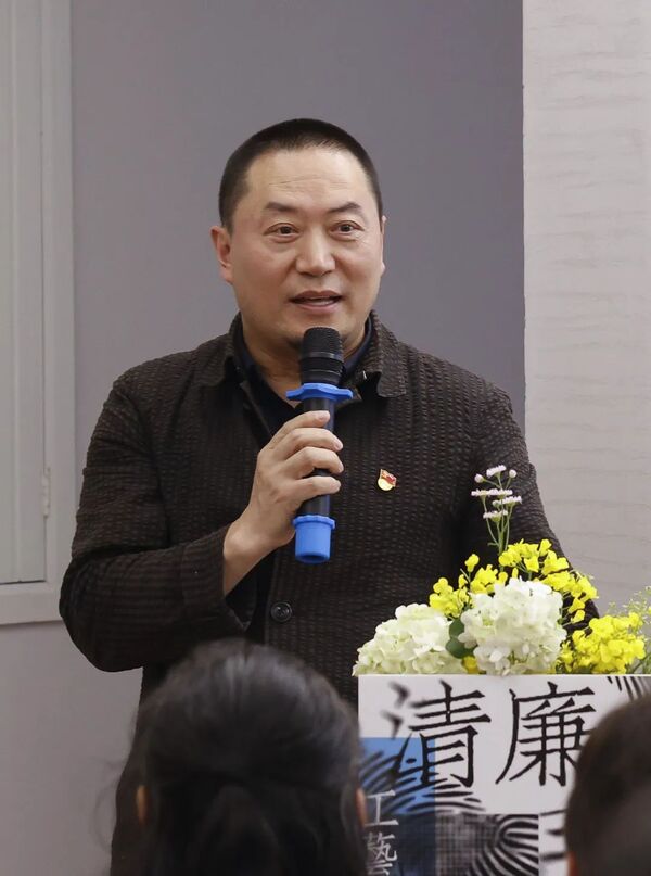 手工艺术学院党委书记李玉普在开幕式中致辞。他说,该展览既是“清廉国美——廉洁文化月”活动的重要组成部分,也是手工艺术学院“清廉手工”廉洁文化品牌的重要内容。“清廉手工”全年设计创作打造100只精品“清风杯”。该品牌分话廉、述廉、送廉三个环节。“话廉”:把廉政教育融入课堂,融入专业创作。“述廉”:通过以“清风杯”线上线下以及各种媒介宣传展览。“送廉”:每年100只精品的“清风杯”将会遇到100个可敬的特殊“主人”,茶余饭后、工作内外潜移默化,对“主人”、对友人“廉洁”无处不在。今天通过展览方式,述“清风”故事、展“清廉”文化,播“清廉”种子。他强调,要坚持以习近平新时代中国特色社会主义思想为指引, 持续营造风清气正的政治生态、育人环境、学术氛围,将手工艺术学院打造为清廉学院。