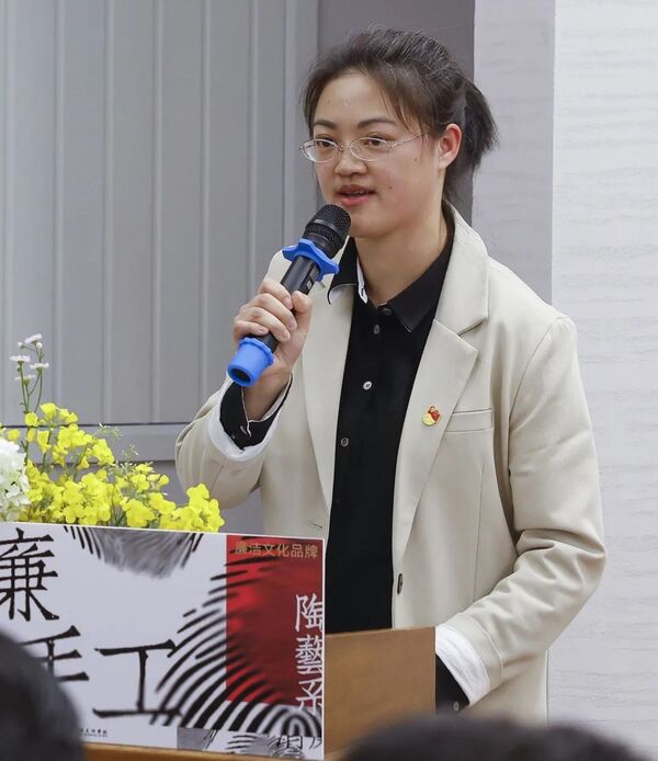 参与“清风杯”廉洁文化展活动研二陶艺专业学生代表康寿松发言