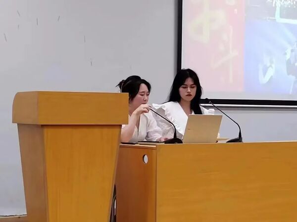 中国画与书法艺术学院学生会主席徐哲斓,分团委副书记马瑄发言