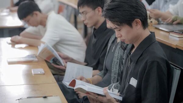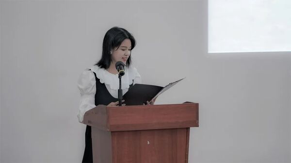 来自视觉传达设计系的新生代表崔悦同学与硕博新生们分享了自己在国美四年本科生活的成长心路和感悟体会。她与在场研究生许下三个约定:相约看世界、相约图书馆以及相约强身健体。呼吁同学们一起用奋斗绘就青春底色,用激情诠释青春价值,不负青春,不负韶华,做鲁迅先生期待的那“发光发热”的青年,在国美这片艺术热土上创造无限可能。