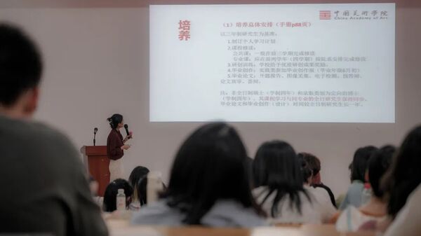 成朝晖老师重点给大家分析了“研学”与“研创”。“研学”是强调哲匠精神为旨归的拔尖创新设计人才培养,研究是人生和事业的第一步,没有研究,就不会对世界、社会、以及个人人生有深刻的认识和了解,也不会对规律有更好的认知,也难以把握事物的规律。“如哲人般思考,如匠人般劳作”,她诫勉新生研究生的学习是一种修炼,通往成功之路需要这种境界。另一方面,“研创”则是以“艺理兼通”为特征的研究创作模式。她强调,研究生应进入一个转型期,从以往获取知识为主的被动学习转变为获取知识和创造知识的主动学习。成朝晖老师还对硕博所侧重的方向作了区分,即硕士强调设计语言的研究与开发,博士强调专业方向的创新与立论。为了更好地使研究生适应学习,成朝晖老师从研究方向深化整合、系统课程体系建设以及教学科研特色开展三个方面来为新生详细介绍了学院的研究生教学概况。