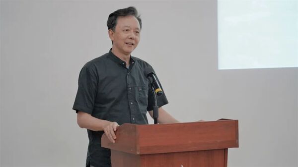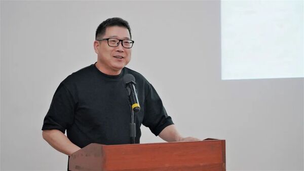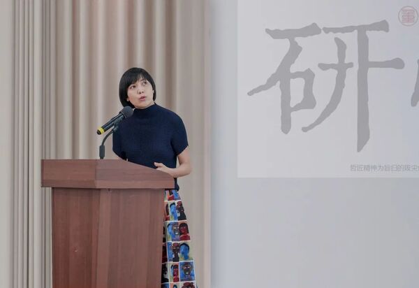 设计艺术学院副院长成朝晖老师首先为师生解读了中国美术学院研究生录取通知书的设计背后的故事,由此为大家阐述了何为中国美术学院?即中国艺术的先锋之旅,美术教育的核心现场,学院精神的当代宣言。这可以说是代表了中国视觉文化与艺术院校的高度。接着成朝晖老师回归到最初的本体,聚焦“研”字,左边为石,右边为开,所谓精诚所至、金石为开,通过对中国汉字“研”字的解读,来告诉大家学问是需要细细研磨的。