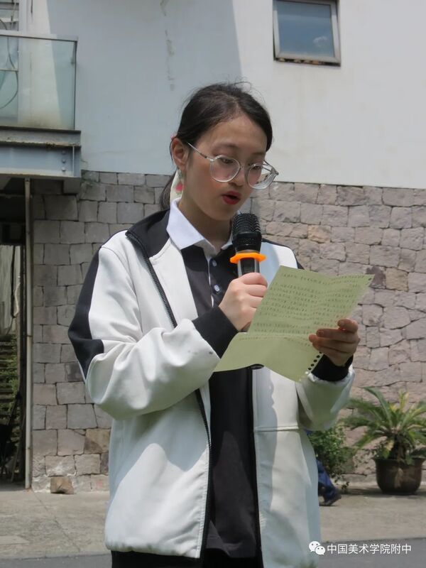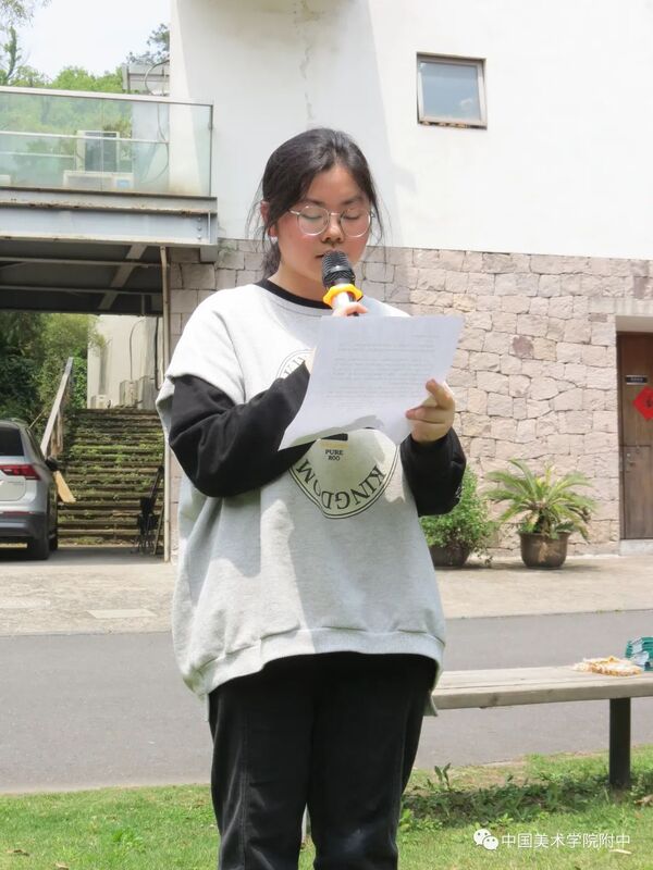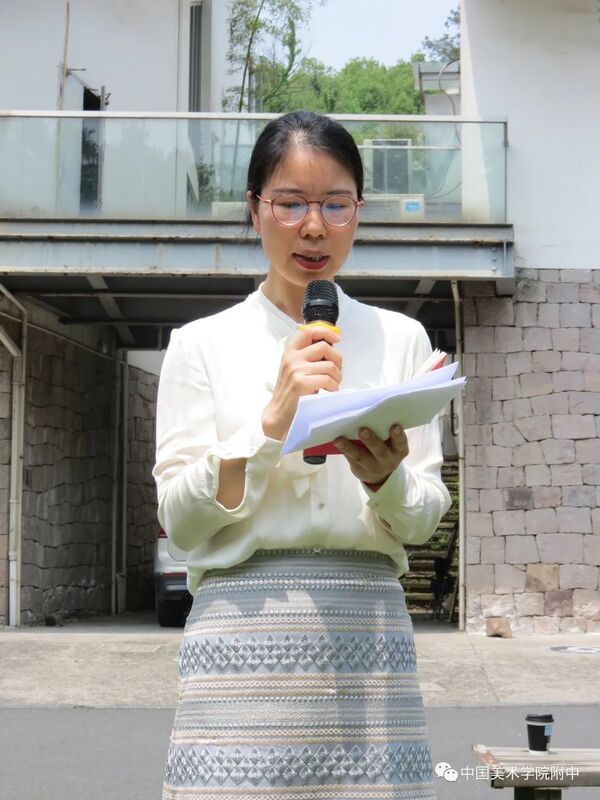 中国美术学院团委书记卓美红代表学院团委对新入团团员表示祝贺,她从1930年我院革命烈士夏朋等人建立第一个团支部的历史讲起,勉励附中团员青年要传承和赓续红色血脉,继承和发扬五四精神,做好当前勤奋学习的重要任务,珍惜韶华,不负青春,用艺术的画笔为祖国的美好明天增光添彩!