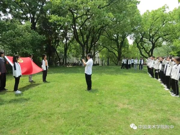 2022年4月25日中午12点30分,38名附中优秀青年学子在老师和同学们的共同见证下光荣加入了中国共产主义青年团。附中直属党支部书记俞芳秀,中国美术学院团委书记卓美红,附中学生科科长胡云,附中办公室主任方世峰、附中分团委副书记陈艳琰、何应杰出席了入团仪式,仪式由附中分团委书记王瑾主持。
