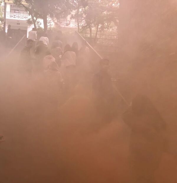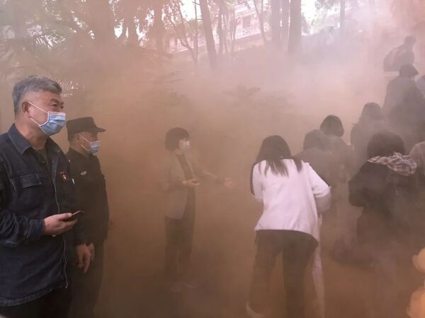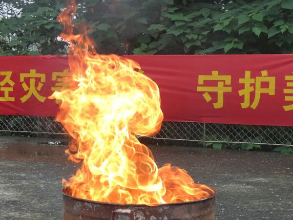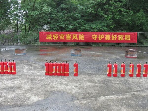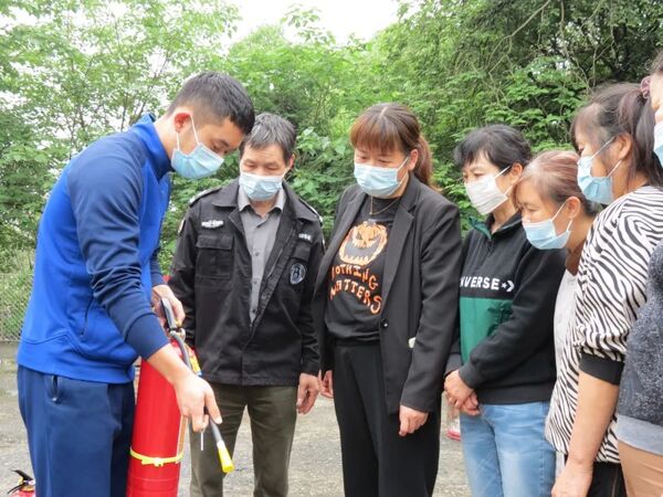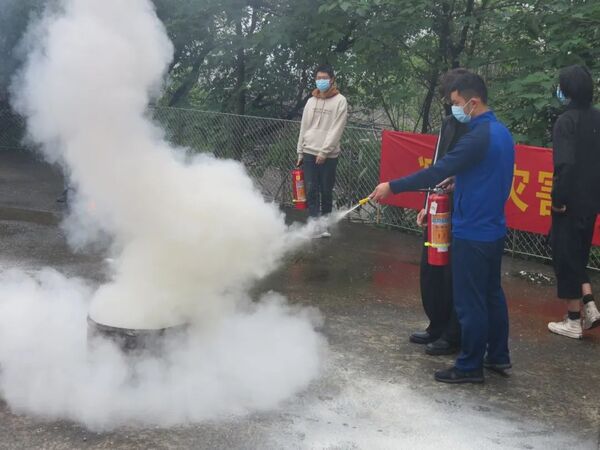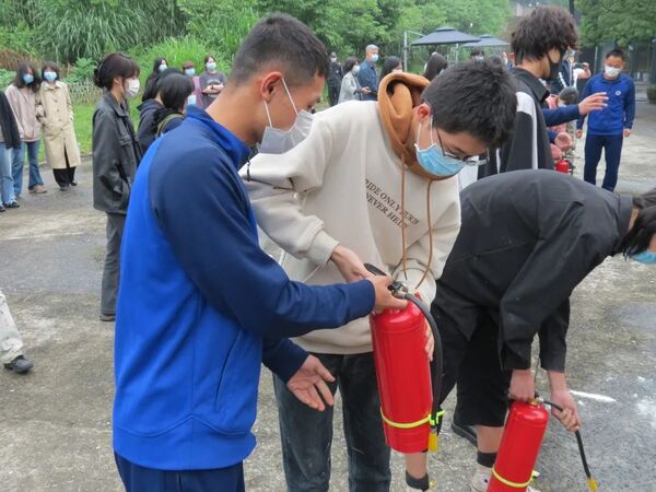 杭州消防救援支队特勤大队三站的消防官兵教附中师生员工使用灭火器灭火