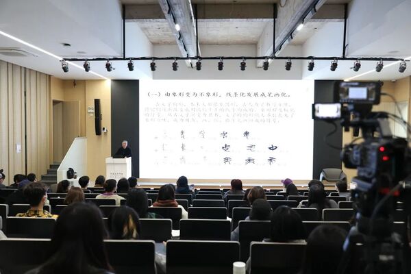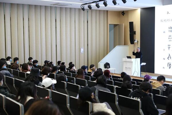 曹锦炎教授细致、生动的讲述,深深吸引了前来听讲的同学们。在讲座中,他时不时将古文字的字形演变与设计思考结合起来,并穿插详实的古文字材料讲解。在现场互动环节,同学们积极踊跃提问,曹锦炎教授一一进行了精辟的解答,气氛十分热烈。讲座在热烈的掌声中圆满结束。