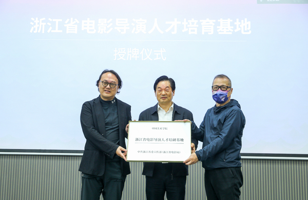 随后,葛学斌副部长正式向“浙江省电影导演人才培研基地”授牌,中国美术学院院长高世名与中国美术学院影视与动画艺术学院院长徐小明作为代表共同接牌。