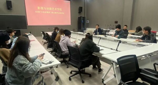 2022年4月15日中午12点,影视与动画艺术学院在3号楼310会议室召开了学院党委扩大会议暨第三轮支部书记培训会,学院全体党支部书记及各支部学生党员代表参会,会议由学院党委副书记马海燕主持。