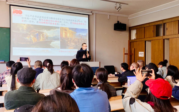 总支特邀中国美术学院马克思主义学院院长,党史学习教育省级专家宣讲团成员丁红旗老师为全体师生党员上党课。丁老师以 “江山就是人民,人民就是江山”为题,对中国共产党百年辉煌历史做出深刻解读。他结合我们熟悉的美术作品,以幽默的语言和激昂的感情把共产党为人民奋斗的历史生动地展现出来,使全体党员对党史有了更深一层的认识,并得到一次深刻的教育。丁老师特别强调,作为党员要“学史明理、学史增信、学史崇德、学史力行”,通过学党史,体会一代又一代中国共产党人的顽强拼搏、不懈奋斗的精神,学习视死如归的革命烈士、顽强奋斗的英雄人物、忘我奉献的先进模范,形成了一系列伟大精神,构筑起了中国共产党人的精神谱系,为我们立党兴党强党提供丰厚滋养。丁老师还提到,全国抗击新冠肺炎疫情的阶段性胜利和全国脱贫攻坚的伟大胜利,都充分体现了习近平总书记所说的“江山就是人民,人民就是江山”的伟大真理。丁老师的精彩党课使人意犹未尽。