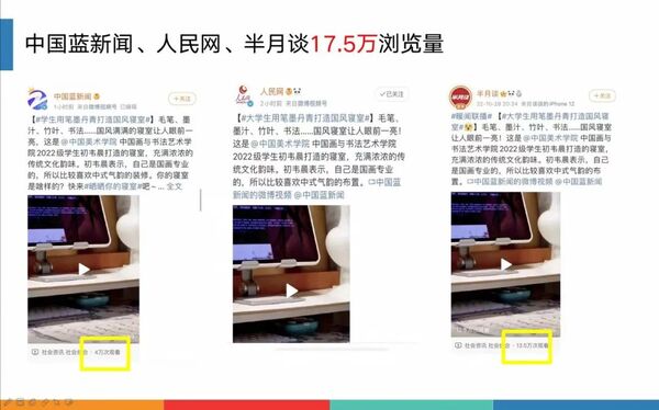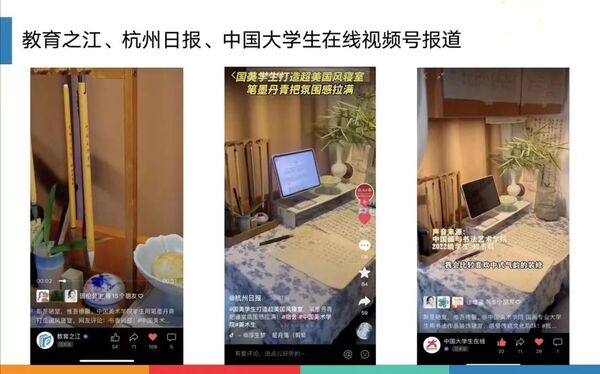 网友热评“书香府邸!”“对这种古风古韵的东西完全没有抵抗力!”“很难不爱这种寝室!”。这间“国风”寝室被“教育之江”(浙江省教育厅)视频号、中国大学生在线、杭州日报、天目新闻、杭州网等网络媒体转载报道,全网浏览量超400万。