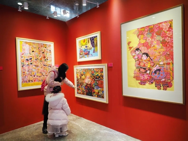 2022年1月,“新生活·新风尚·新年画”——我们的小康生活美术作品展示活动现场。杜建坡 摄(人民视觉)