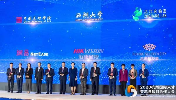 开幕式现场颁发了首届杭州金巢奖,奖项主要用于表彰在人才引育、聚才用才领域表现突出的单位、人才平台等。中国美术学院与浙江大学、西湖大学、之江实验室、阿里巴巴集团等十个单位获此殊荣,中国美术学院党委书记金一斌参会并现场领奖。