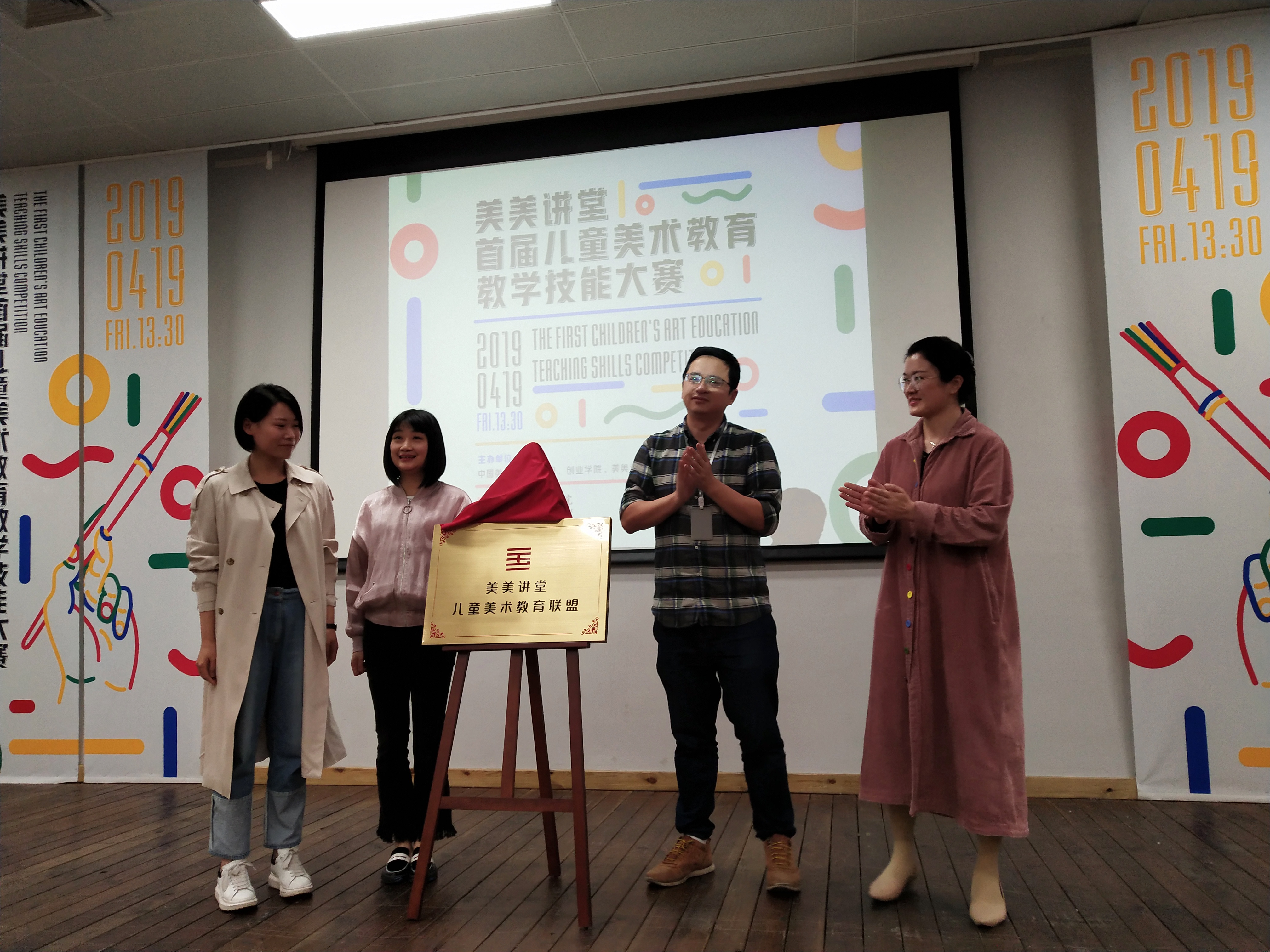 大赛最后,由儿童美术教育机构胡子妈妈、达达鱼和艺笔艺画三家美院毕业生创业企业共同发起倡议并成立了“美美讲堂儿童美术教育联盟”。校学工部部长竺照轩,与三家发起单位代表人:胡子妈妈创始人齐琦、达达鱼创始人康洁、艺笔艺画创始人陆佳茜,共同为中国美术学院儿童美术教育联盟揭牌。期待联盟可以共享理念、整合资源,为提高中国美术学院大学生的就业创业技能与美育实践能力,提升儿童美术教育行业的整体师资水平,传播和普及社会美育,做出积极贡献。