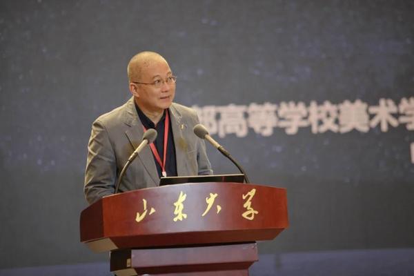 许江在大会作题为“文声艺动”的发言。他阐述了对于新文科建设的理解,认为文史哲的养心塑魂,经管法的实务世功,教育与艺术的育人化人,各专业知识体系、格致方法、价值理念、度量尺衡、感知路径都十分不同。《新文科建设宣言》从提升国力、坚定自信、培养新人、建设教育强国和文、科融合发展等五个方面,全面梳理新文科建设的时代意义与重要性,凝塑了文科宏博战线的广泛共识;以四个“坚持”凝炼文科建设的重要内涵,提出我国文科教育发展的特色之路;围绕提升水平,强化特色,构建体系,提出新文科的共同任务和基本着力点。《宣言》有高度、有着力点,做了很好的开创性的工作,艺术学科应积极响应,“文”声共舞。许江分析了艺术教育面临的挑战。他指出,在新文科的八大门类中,艺术学是最年轻的,却也是最古老和悠久的。艺术学提升为学科门类,既是对人文智性方式的重视与提升,又是我国高等教育学科设置的推进与优化。总览发展的整体,今天艺术教育的主要挑战在于,在当今的国际竞争中,理工医农属硬实力,文科均属软实力,人文教育的个性化内质、诗化特征始终面对技术理性的拷问,遭遇一系列技术时代的命题;改革开放以来,西方人文教育的优秀经验和当下危机,金沙俱下,一道影响着变革中的中国人文教育;中国的艺术教育在独特的根源因素和传统风神的基础之上,从中国当代生活大地出发,进行时代性、创造性的继承、转化与变革,缺少现成的方案。