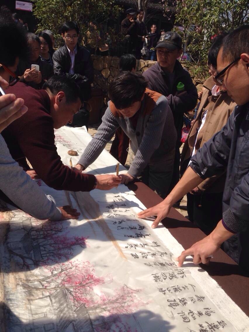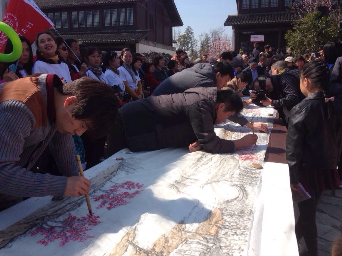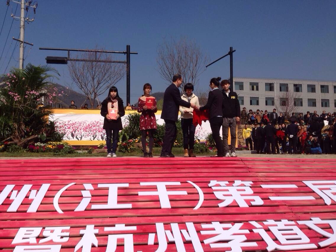 开幕式上,院党委副书记胡钟华为写生创作比赛获奖学生颁奖,原正校级巡视员高法根与我院国画系学生一同激情挥毫共绘皋亭千桃园长卷,助力江干区皋亭山文化宣传、旅游推广。开幕式上,市民代表宣读了孝道文化倡议书,师生和市民朋友一同在“孝道无言,皋亭作证”的画卷上签名,与地方政府共倡孝道文化,并向当地老人赠送了我院学生专门为他们绘制的肖像作品。